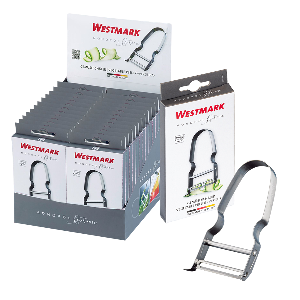 The Westmark "Monopol Edition" Stainless Steel Vegetable Peeler, makes peeling vegetables from potatoes to carrots, a breeze.