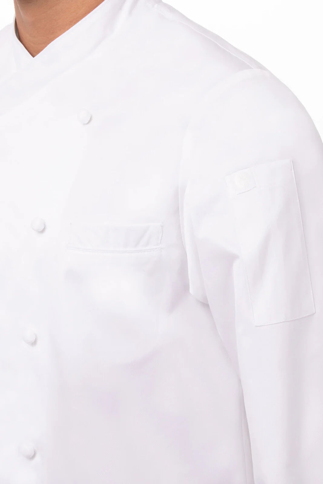 Milan is regarded as the world's fashion capital. So we brought the fashion and function with the Milan Executive Chef Jacket and packed it with high-end features. With a name like Milan, it better be impressive. Don't worry, it is. Available in white only 100% Cotton 183 g 86-152 cm Double-breasted with long sleeves Crossover collar White piping French cuffs and underarm vents Hand-rolled buttons Two internal jigger buttons