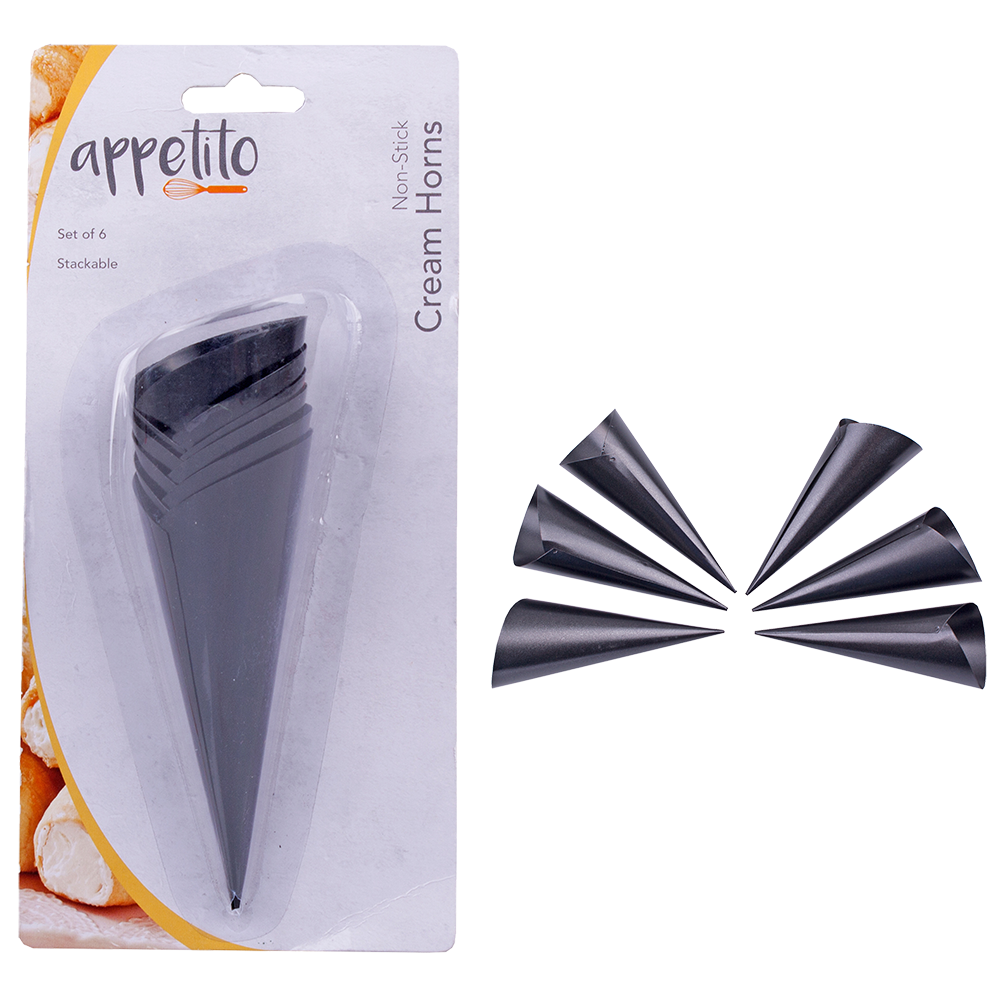Appetito Cream Horns (set of six) will help you to create fancy pastries with ease. Non-stick (for easy cleaning) and stackable, these cream horn moulds are a must-have for any budding cook wanting to whip up the perfect dessert for a special occasion.