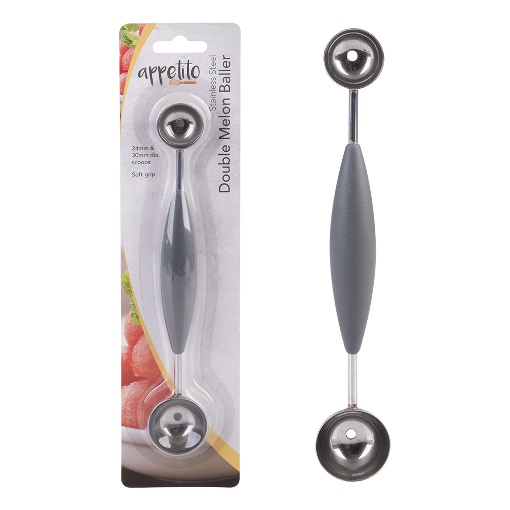 The Appetito Stainless Steel Double Melon Baller is perfect for creating insta-worthy fruit salads.