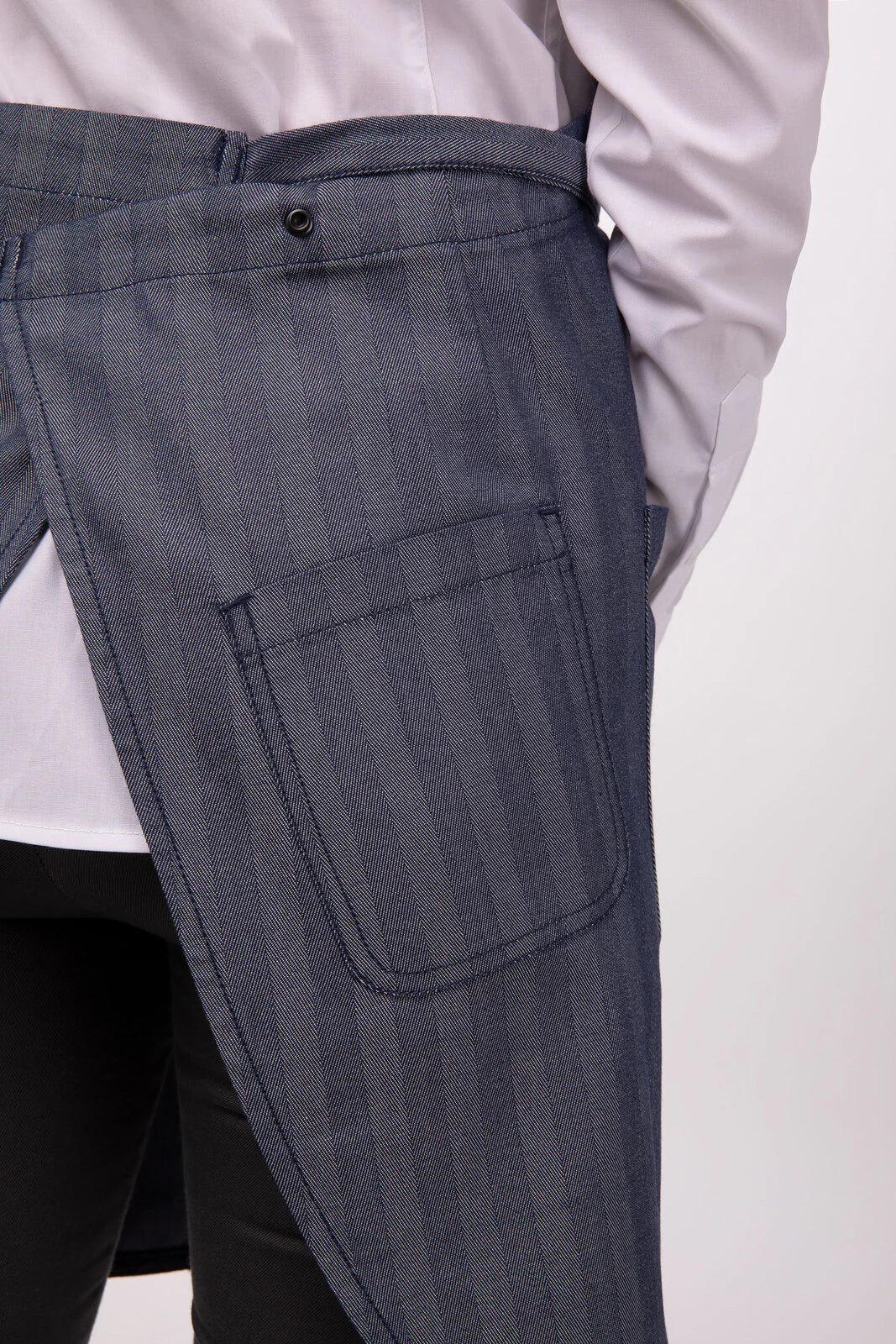 The Seattle Bib Apron heralds in a new era of culinary and hospitality apparel while capturing the cool vibe of the Pacific Northwest. The herringbone weave makes a bold and fashion-forward statement, while the reversible neck strap and cross-back capability