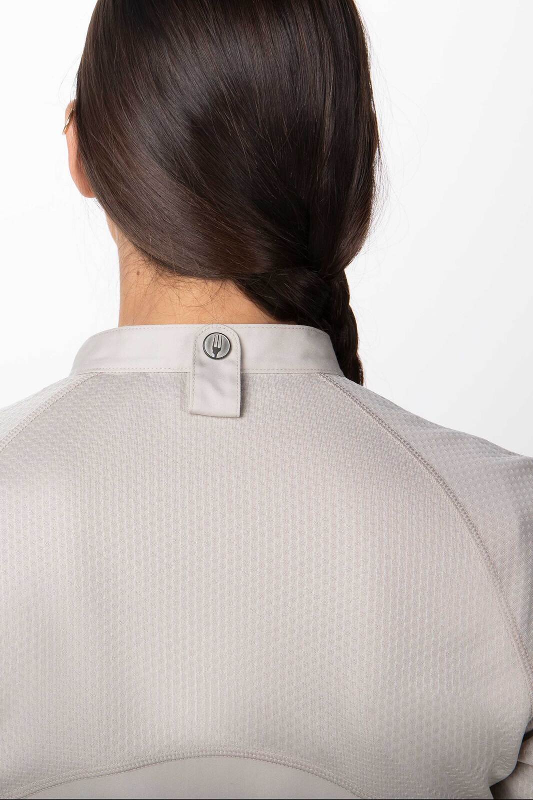 Feel revived and renewed wearing our Varkala Chef Jacket. Our raglan short-sleeve jacket features an off-set zipper front with a snap collar, a back collar apron tab to hold your apron strap in place, a left sleeve thermometer pocket, front chest concealed pockets, and side slits. Move with ease with knitted mesh sleeves and back curved yoke which are made with a recycled 4-way stretch fabric.